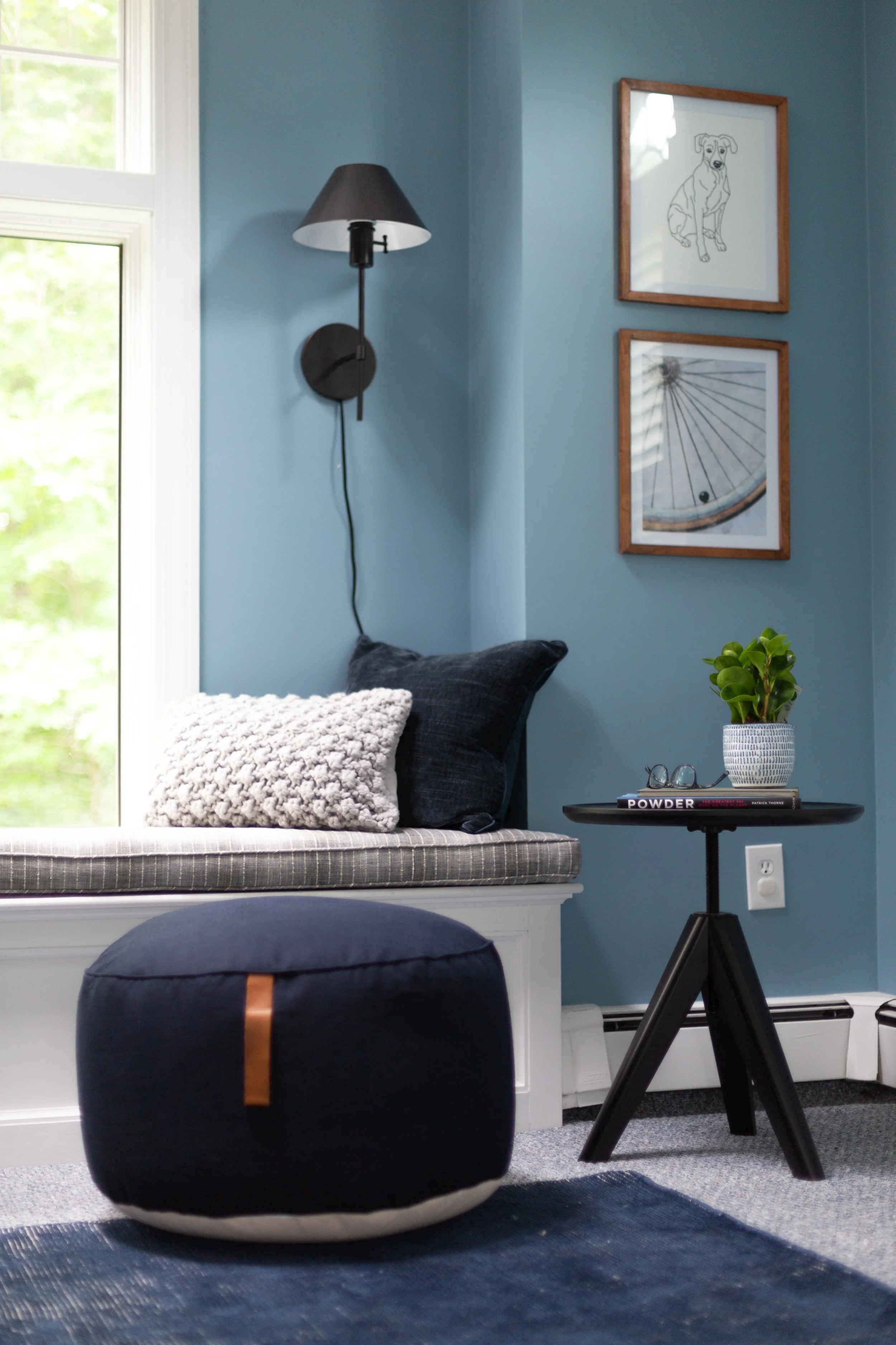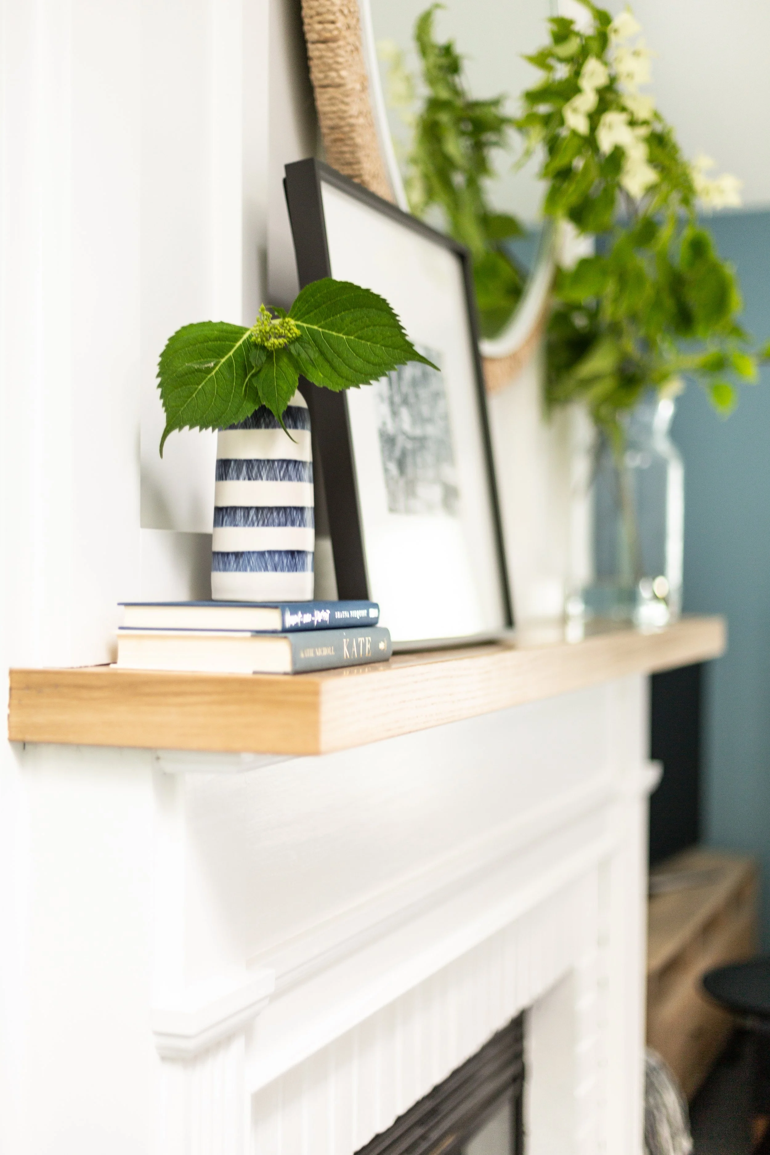 DESIGN DETAILS: This transformation is a great reminder that you don't always need to rip things down to the studs and add wall treatments and ceiling beams and completely reimagine the shape of the space. Some rooms just need a fresh coat of paint, thoughtful window treatments, and furniture you love in a great layout. In this room we found a beautiful abstract painting with all the right colors and framed the lyrics of a sentimental song.