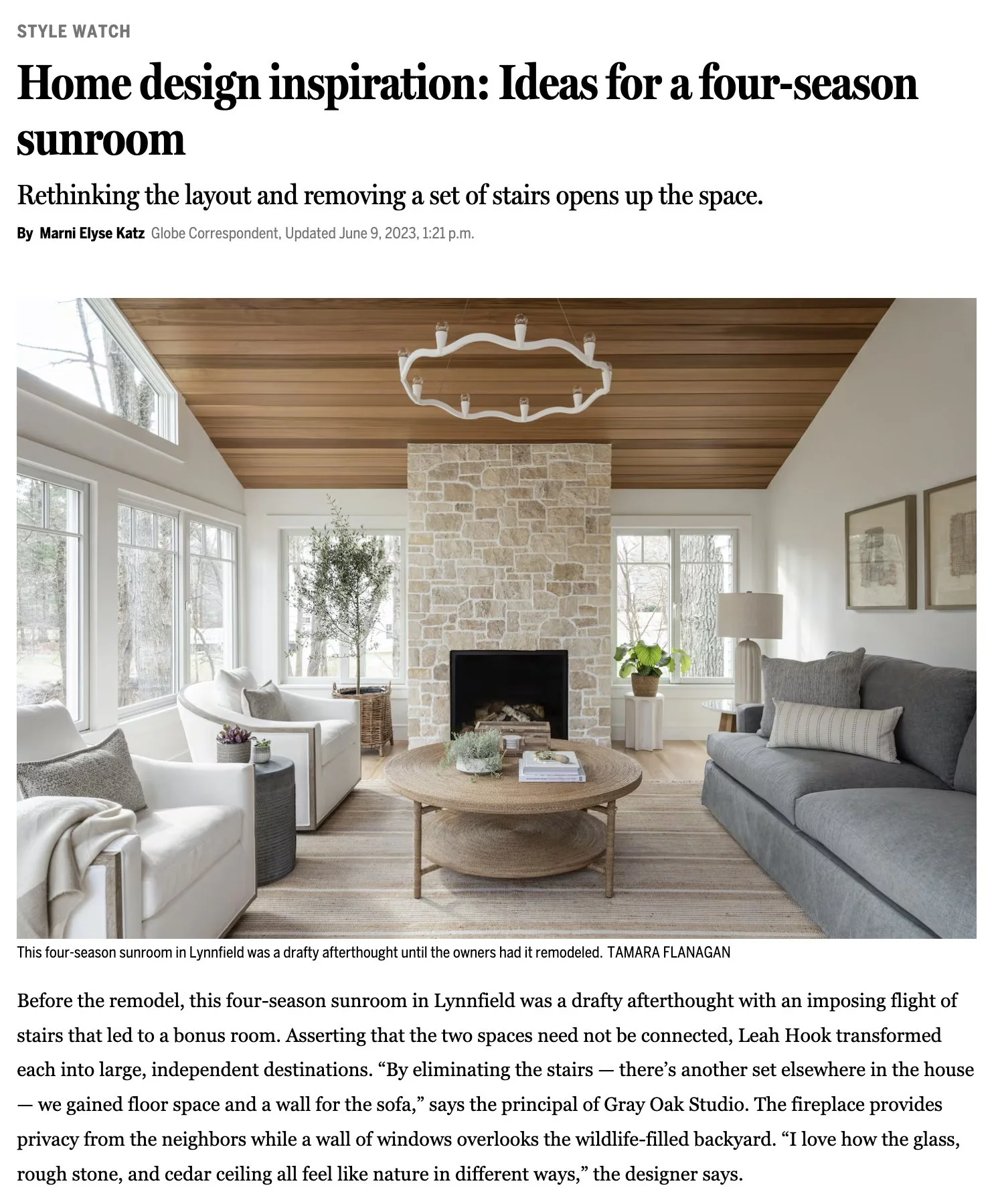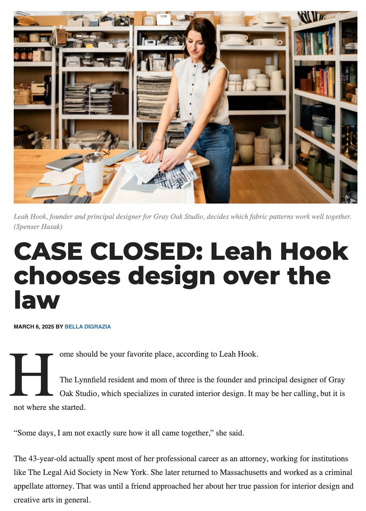 In January 2021, Gray Oak Studio was featured in the winter edition of Northshore Magazine. The cover photo of the article featured an image from the Lovell Project and the Pilgrim Project was included in the article as well. Leah and Sonia were both quoted throughout the article as they discussed the ways the pandemic has affected designing work spaces.